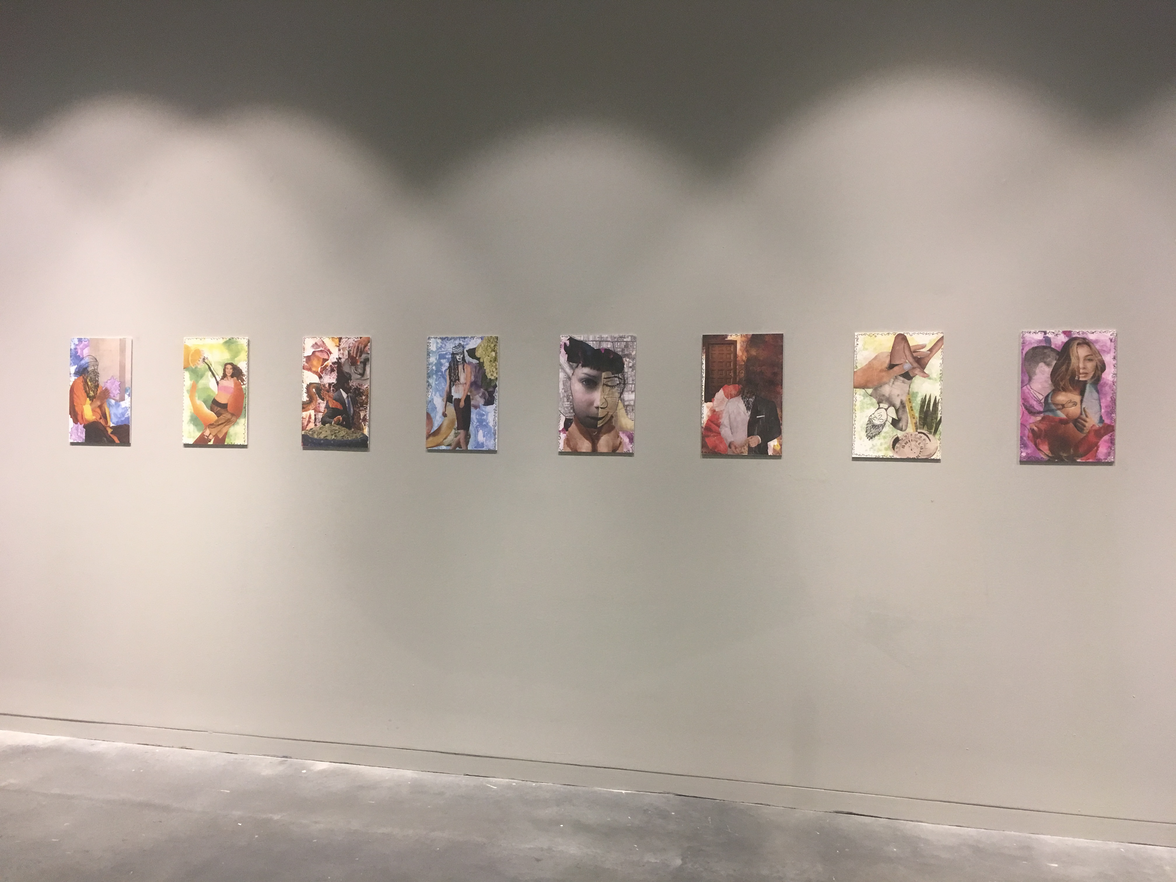 This is a collage series for my senior thesis exhibition show. These illustrations are based on Tarot cards and the meanings behind them. I used modern day imagery, and imagery/textures I originally created. Techniques within these pieces include printmaking, collage and the use of found materials. (l to r) The Hermit, The Sun, The Devil, The Empress, The Moon, The Emperor, The Hanged Man, & The Lovers
